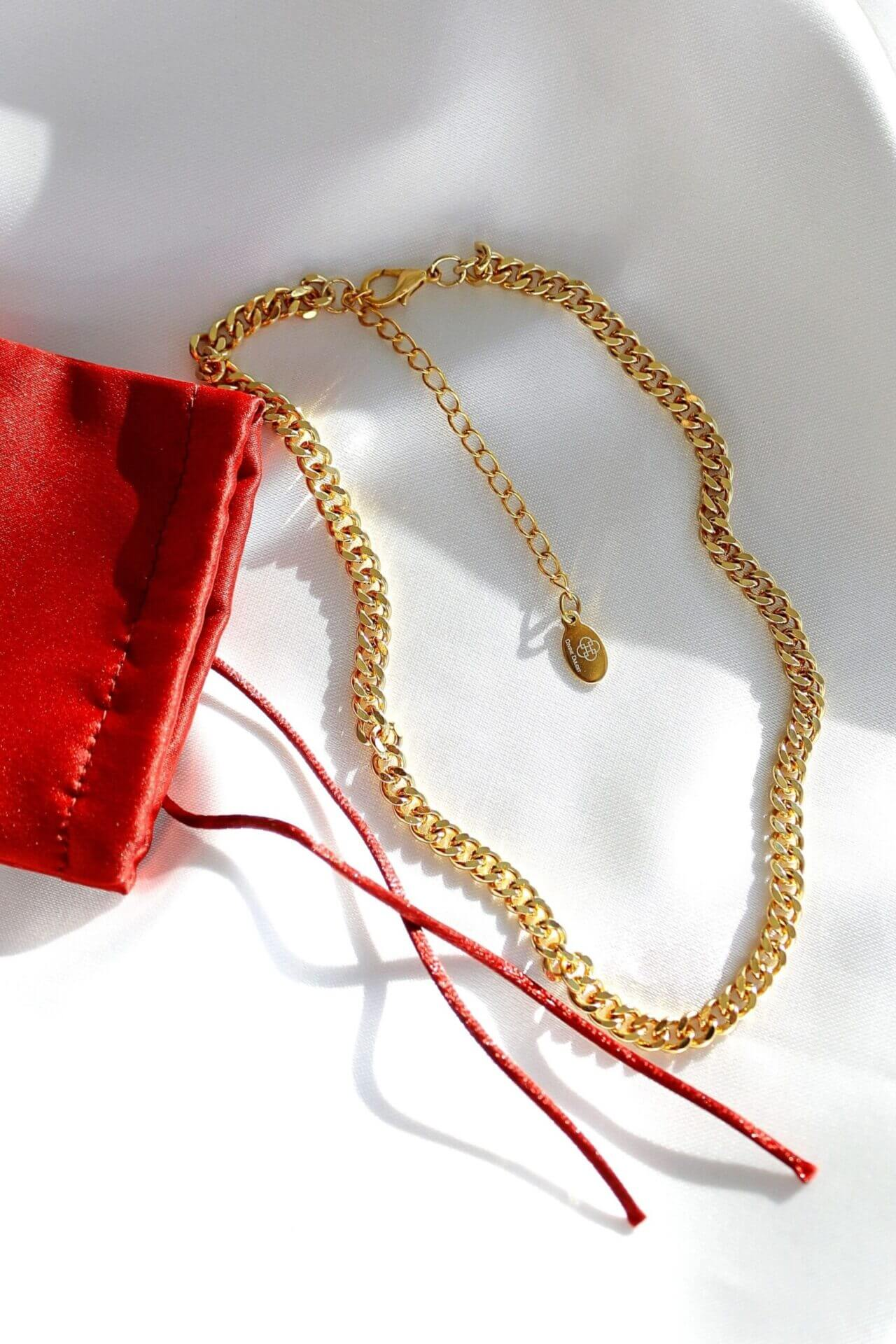 This Cuban chain choker is made of 24 karat gold plated stainless steel which makes it hypoallergenic (friendly to sensitive skin), water friendly and Nickel-free, it can be worn daily or very often without problems.