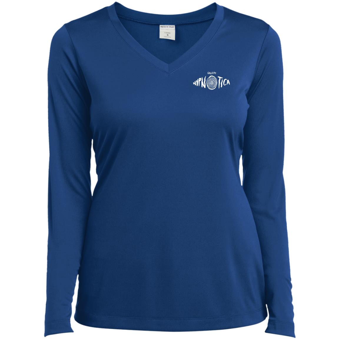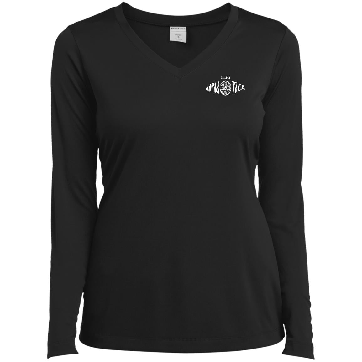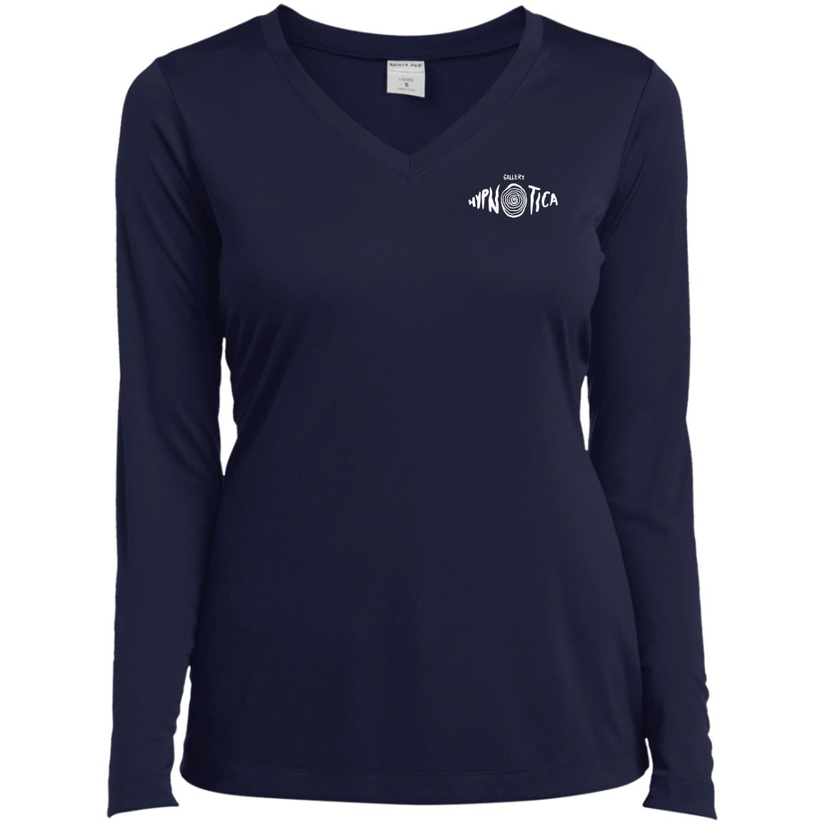 Amazing Gallery Hypnotica Logo White Long Sleeve Performance V-Neck Tee
