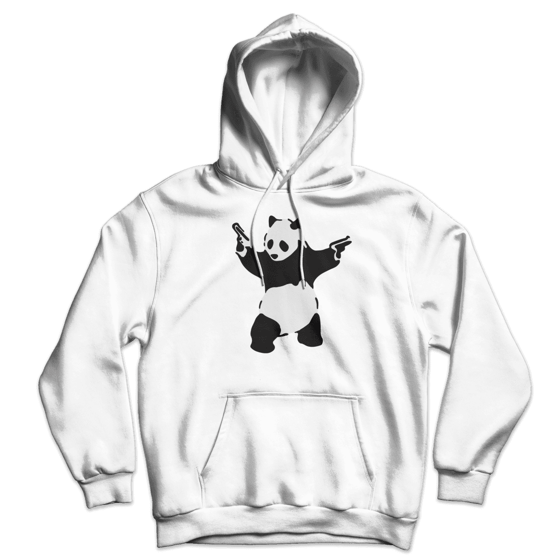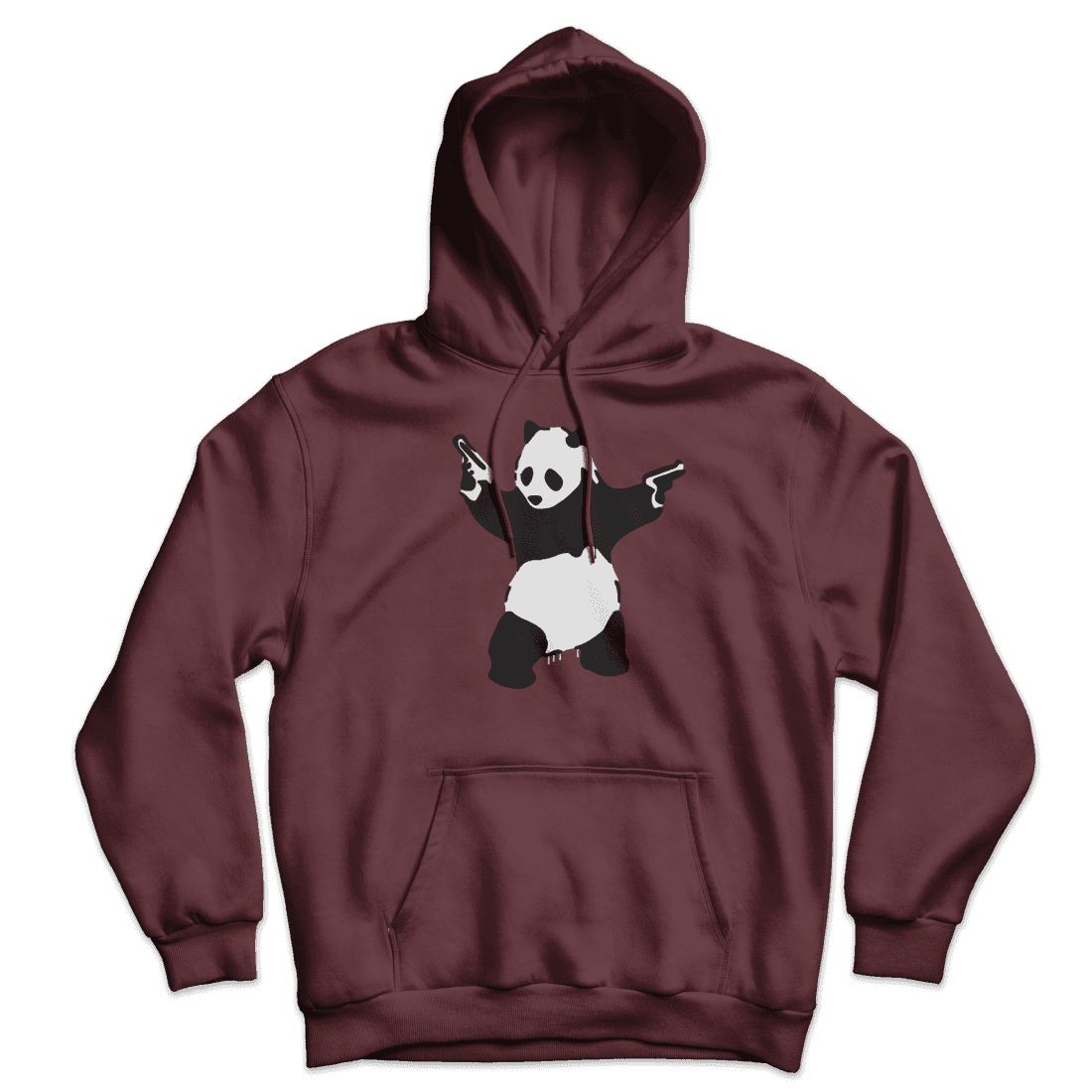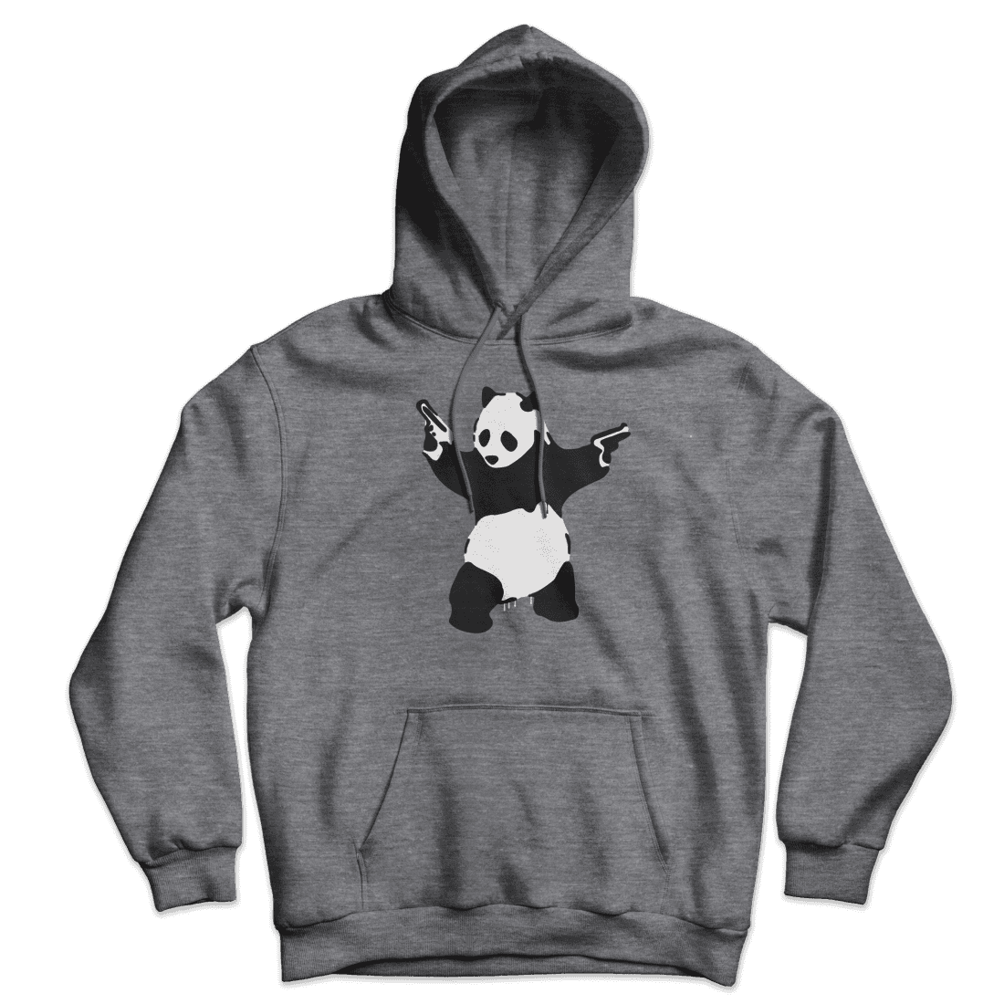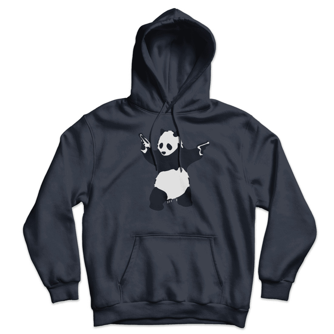 This fantastic hoodie features the famous panda with guns originally painted by the mysterious artist Banksy. His satirical street art and subversive epigrams combine dark humor with graffiti executed in a distinctive stenciling technique and his works of political and social commentary have been featured on streets, walls, and bridges of cities throughout the world.