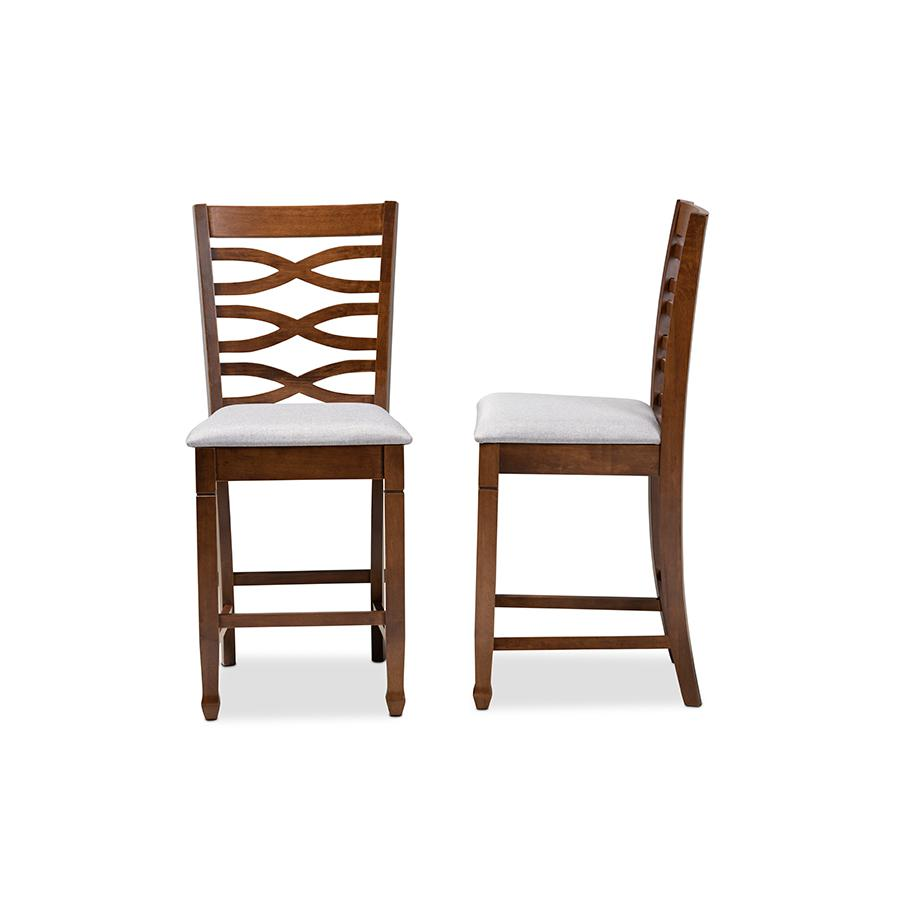 Baxton Studio Lanier Modern and Contemporary Grey Fabric Upholstered Walnut Brown Finished 2-Piece Wood Counter Height Pub Chair Set Set