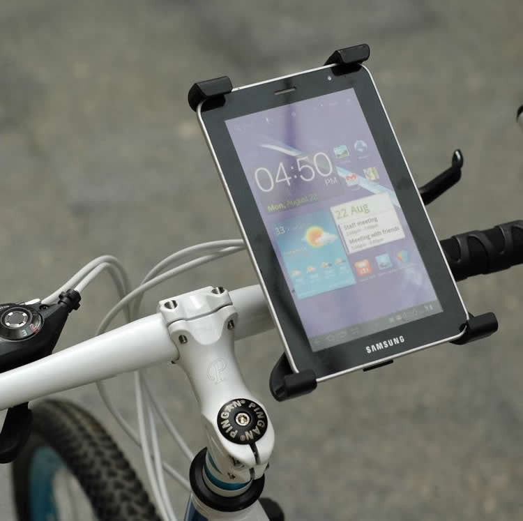 It has a built in secure bike mount that will hold your tablet at the angle you desire.