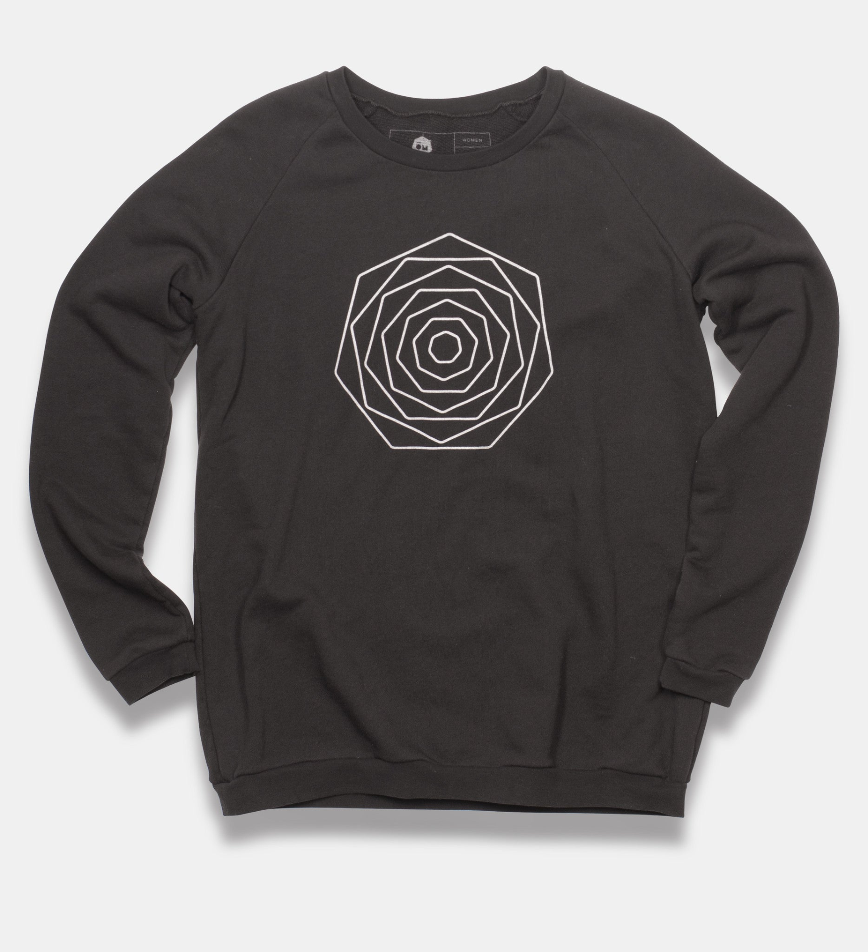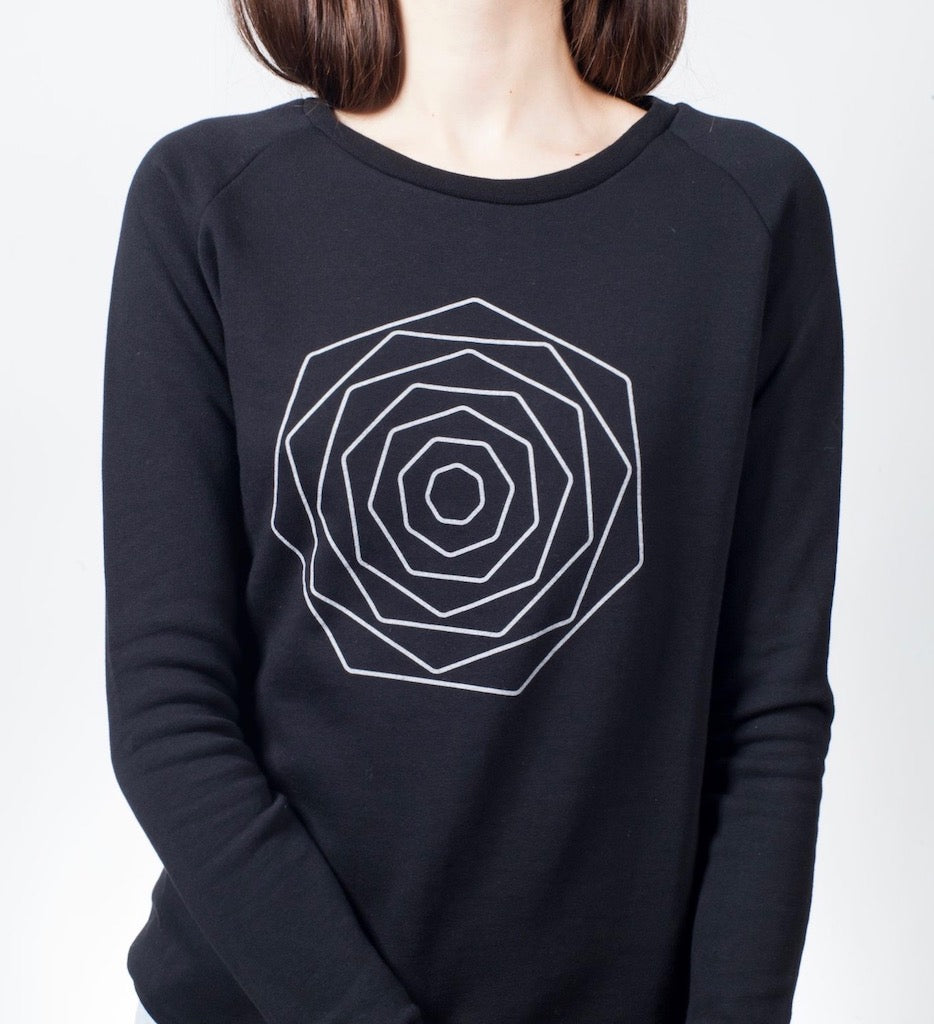 This sweatshirt features our elegant signature Septagon Flower printed in light grey on the front.