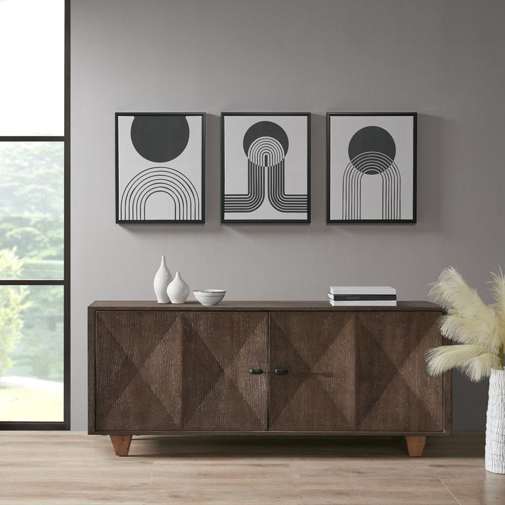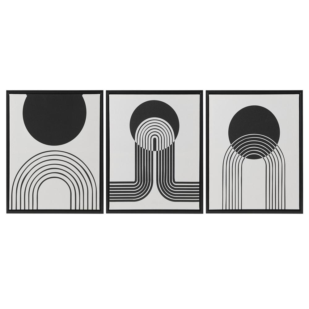 Bring a bold modern touch to your home with the Urban Habitat Cosmic Curl Framed Canvas 3 Piece Set. Each wall art piece features different curved geometric designs, in black and taupe, to create a unique and coordinated contemporary look. A black frame lines each printed canvas to complement the artwork. Sawtooth fixtures of the back of each canvas make them easy to hang together or separately, giving your living room a chic mid-century update.