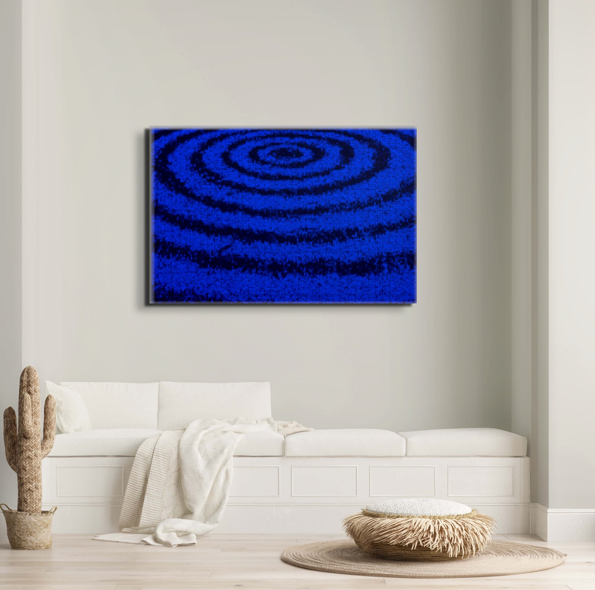 Introducing Juno Black's captivating landscape image, "Hypnotic Spiral." This vivid photo shows a surreal spiral in the sand that has been skilfully altered to look like it is made of beautiful, blue-colored letters. This piece, printed on premium canvas, will instantly improve any space thanks to its distinctive and striking design. It is a unique addition to your house or business due to its exquisite patterns and brilliant colors. Get hold of this magnificent work of art right away!
