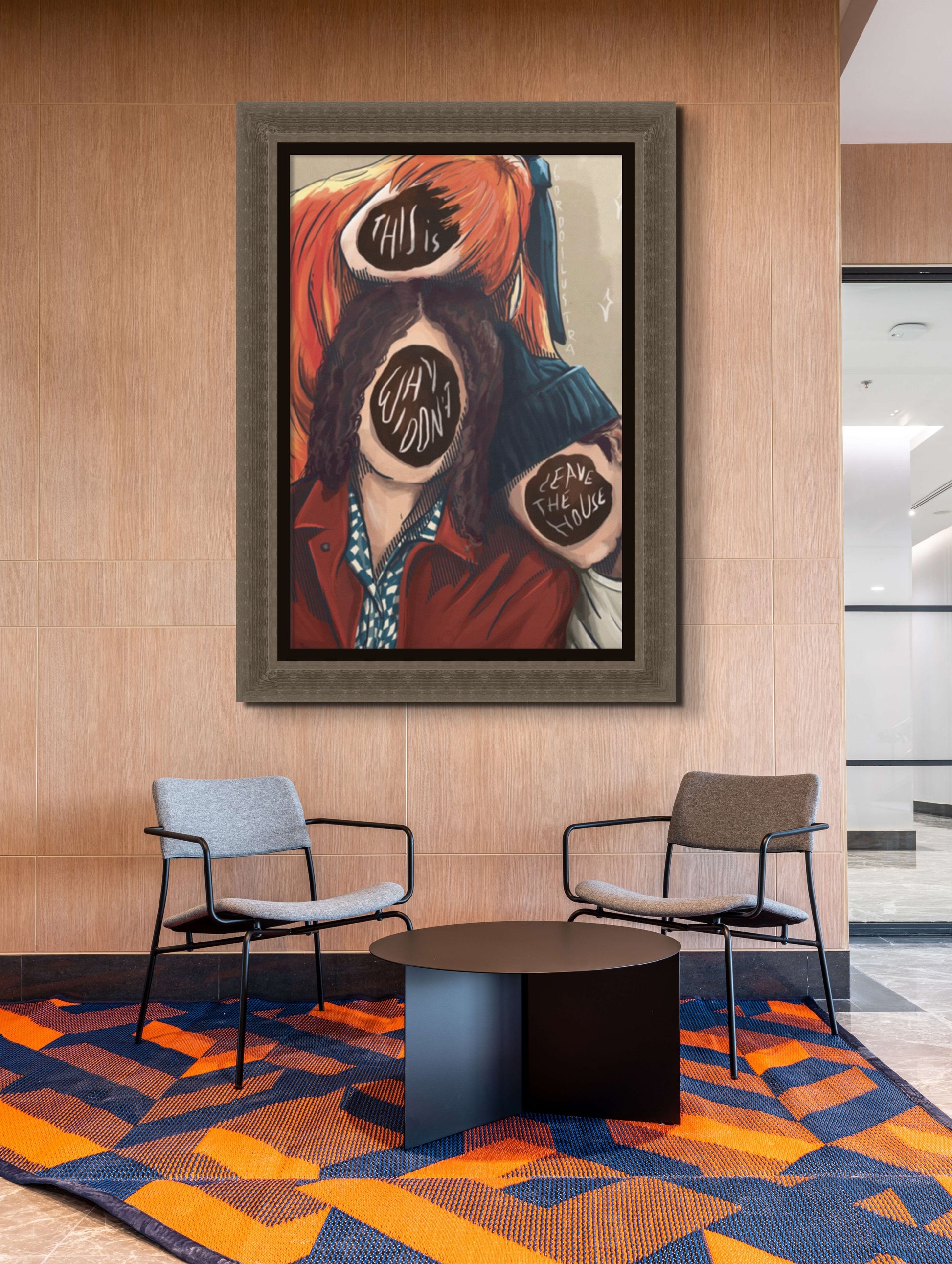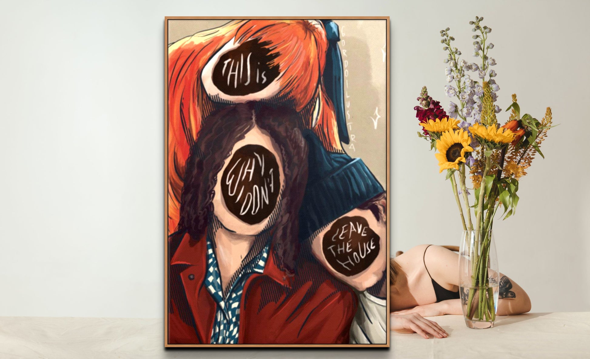 Discover Gordo ilustra's art with "This Is Why I Don't Leave the House," a dynamic drawing inspired by the essence of reality. Three persons with sunken faces, representing reflection and loneliness, are shown in this magnificent work.