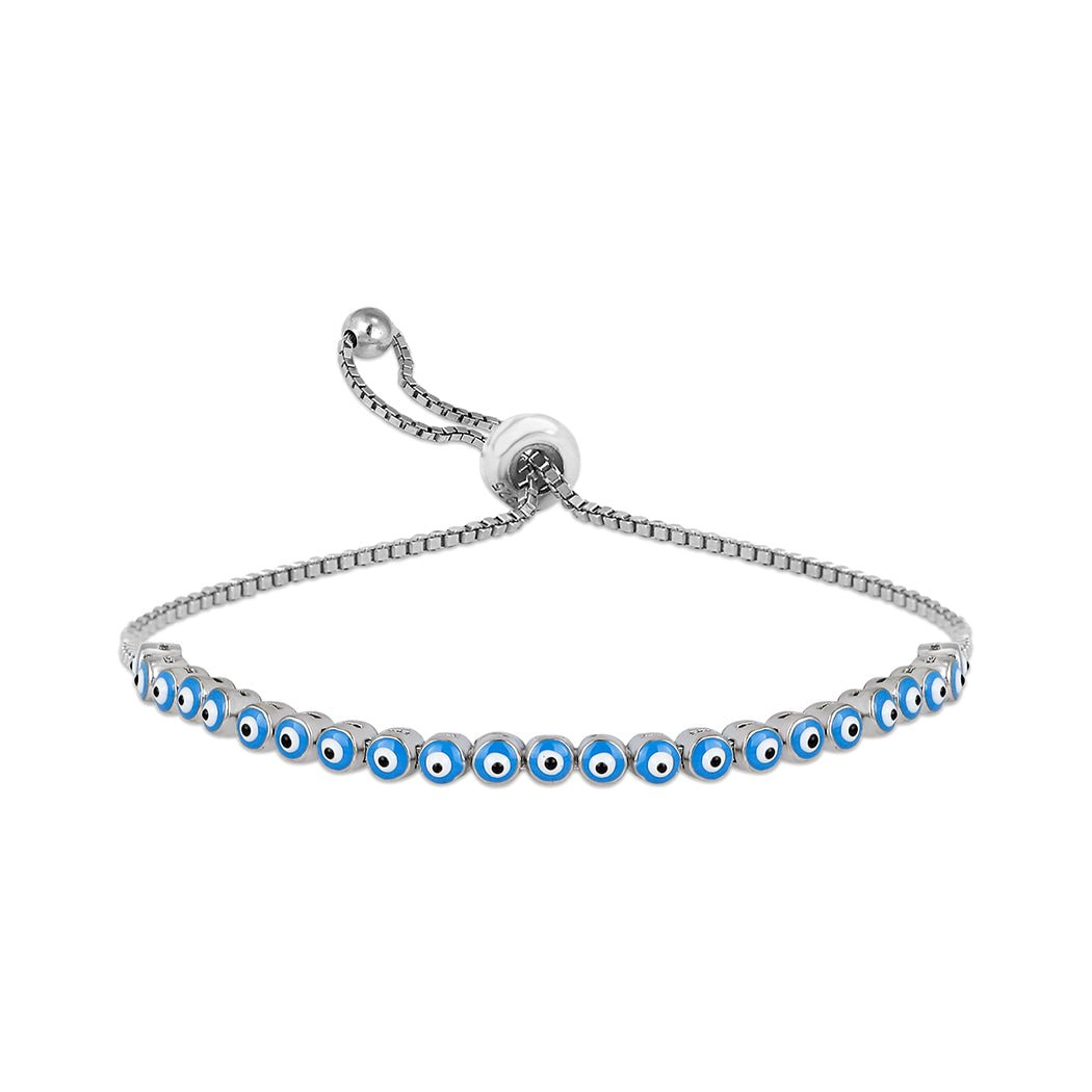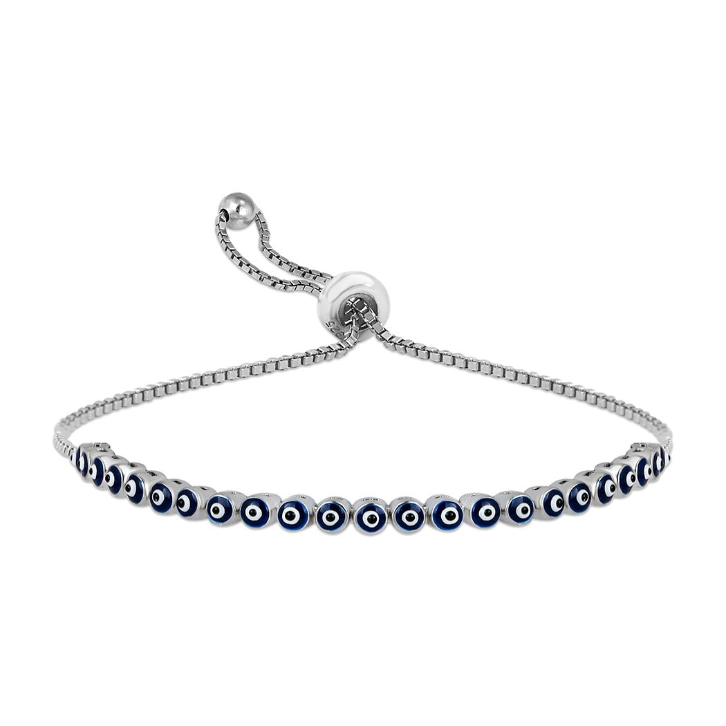 Sterling Silver Adjustable Turkish Evil Eye Bracelets - Good Luck Bracelet - Greek Evil Eye Protection Bracelet